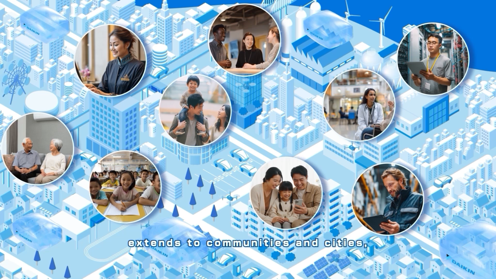 本作は、ダイキンがエアコンの製造・販売にとどまらず、地球の持続可能性に貢献するために取り組んできた多様な事業や活動を、来訪者にわかりやすく、印象的に伝えるための展示映像です。