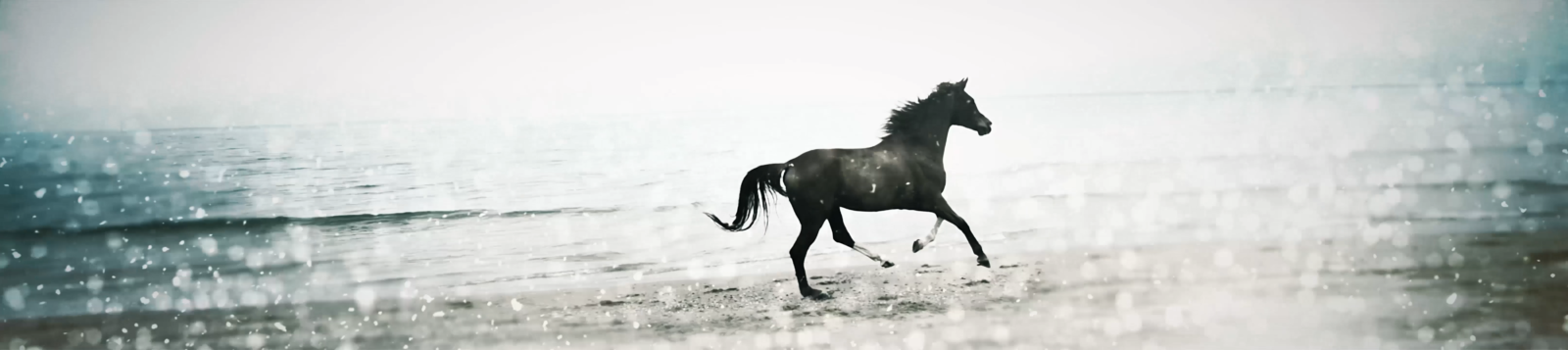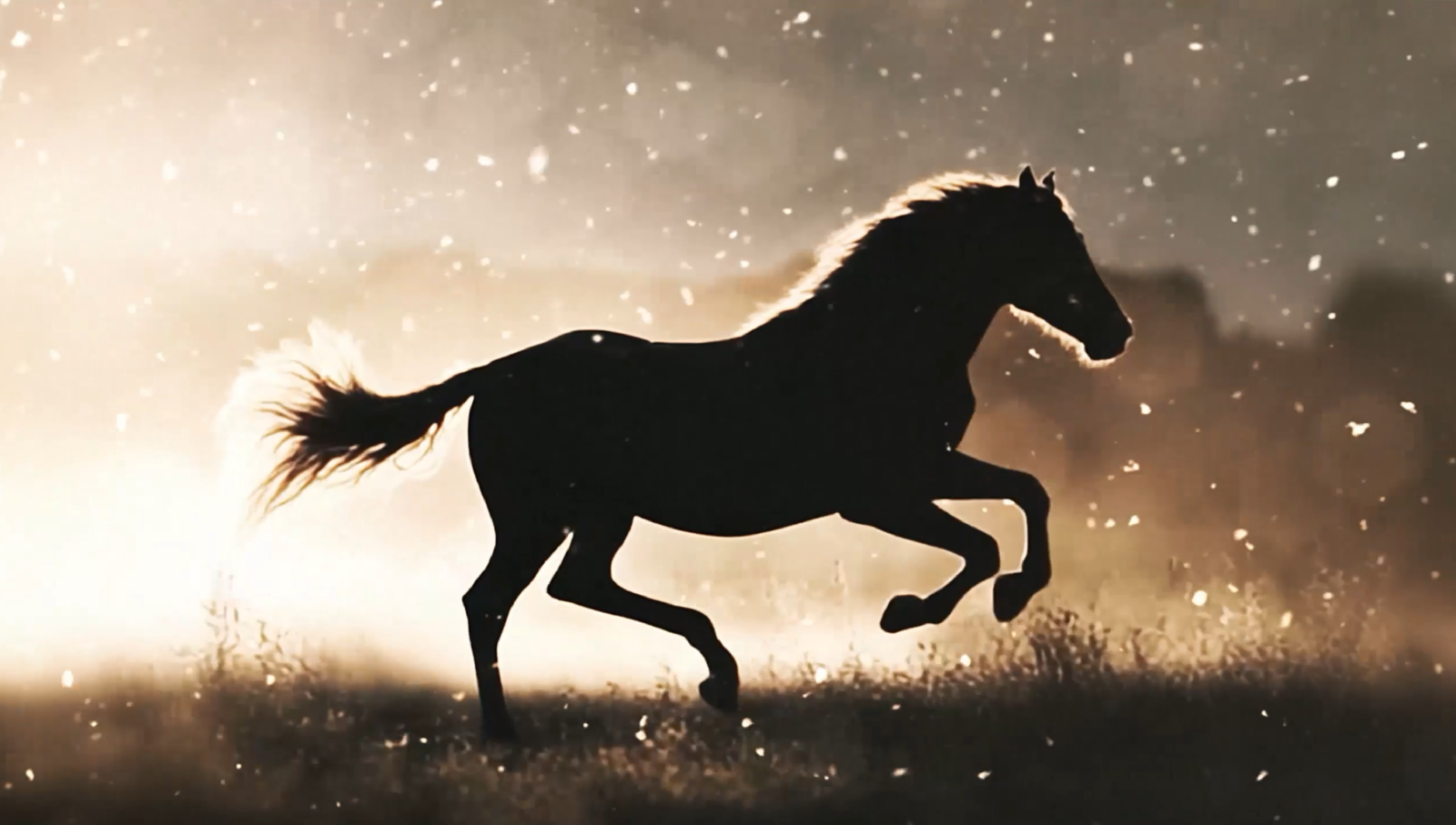 日の出と共に馬が駆け抜けるシーンや、北海道を想起させる雄大な大地と澄み渡る自然美が、スタジオを囲む横長の円弧型大型スクリーンに映し出されました。